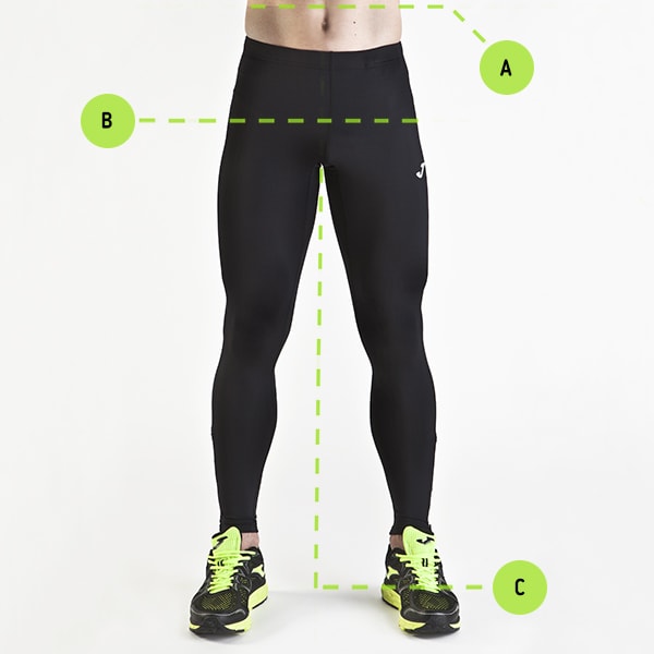 - B Cintura Mantendo os dois pés juntos, meça ao redor da parte mais larga dos quadris, mantendo a fita na horizontal